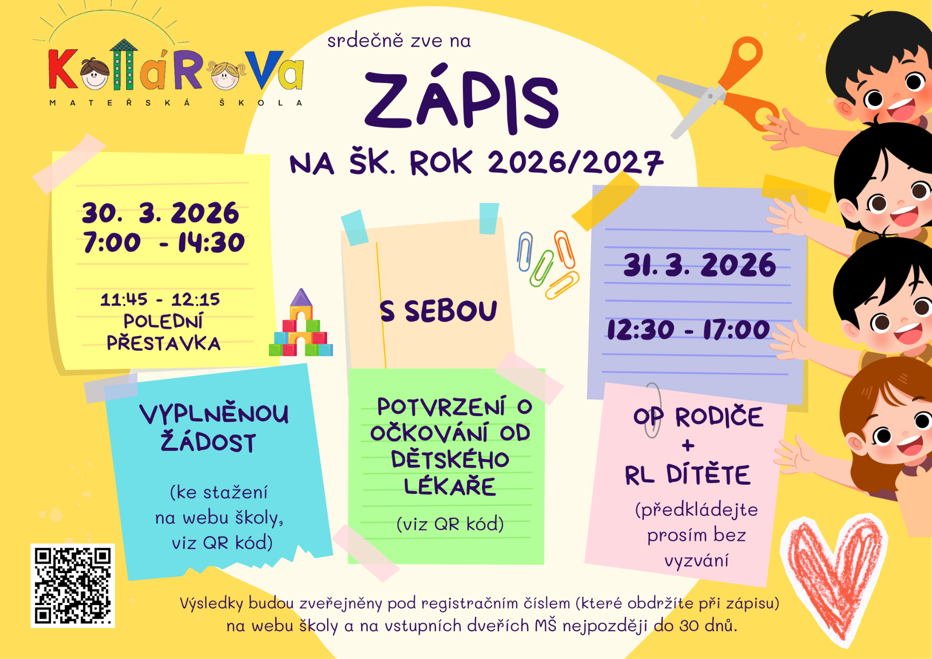 předkládáme informativní „předzápis“ do naší MŠ, který slouží výhradně pro interní potřeby mateřské školy. Na základě jeho vyplnění bude možné poskytnout předběžné informace o volné kapacitě a pravděpodobnosti přijetí. Tento formulář není součástí oficiálního zápisu. Dotazník je anonymní.