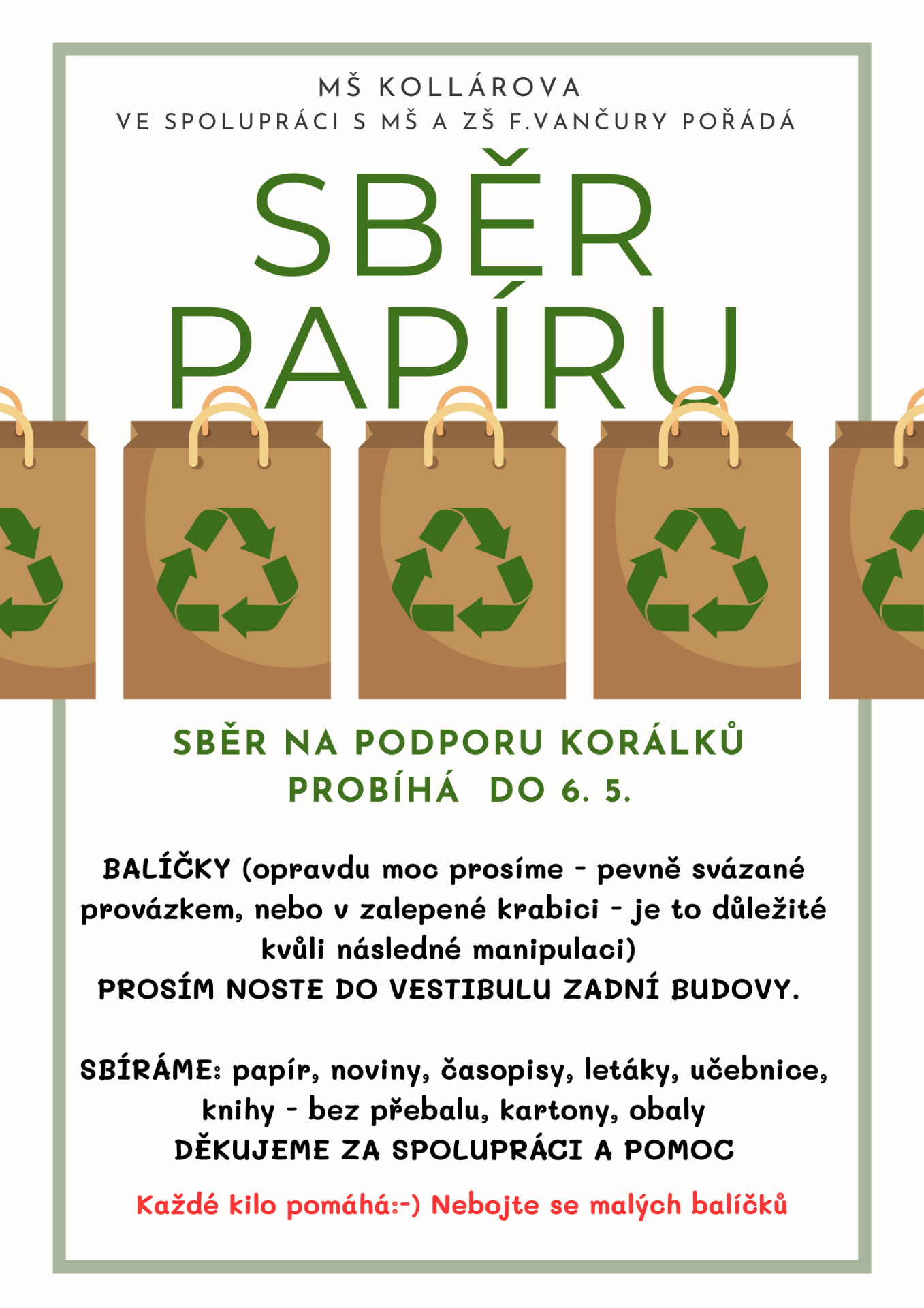 SBĚR PAPÍRU PRO KORÁLKY MŠ A ZŠ F. VANČURY